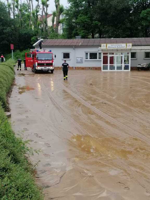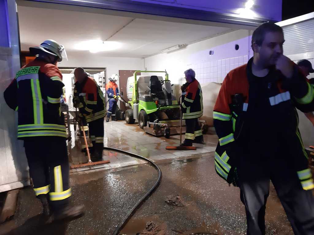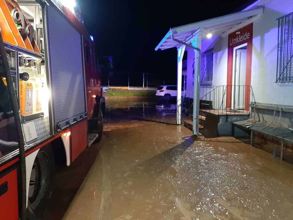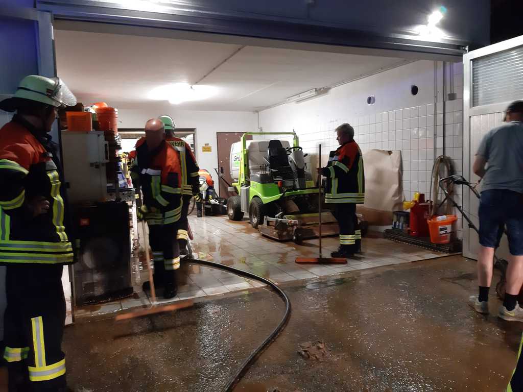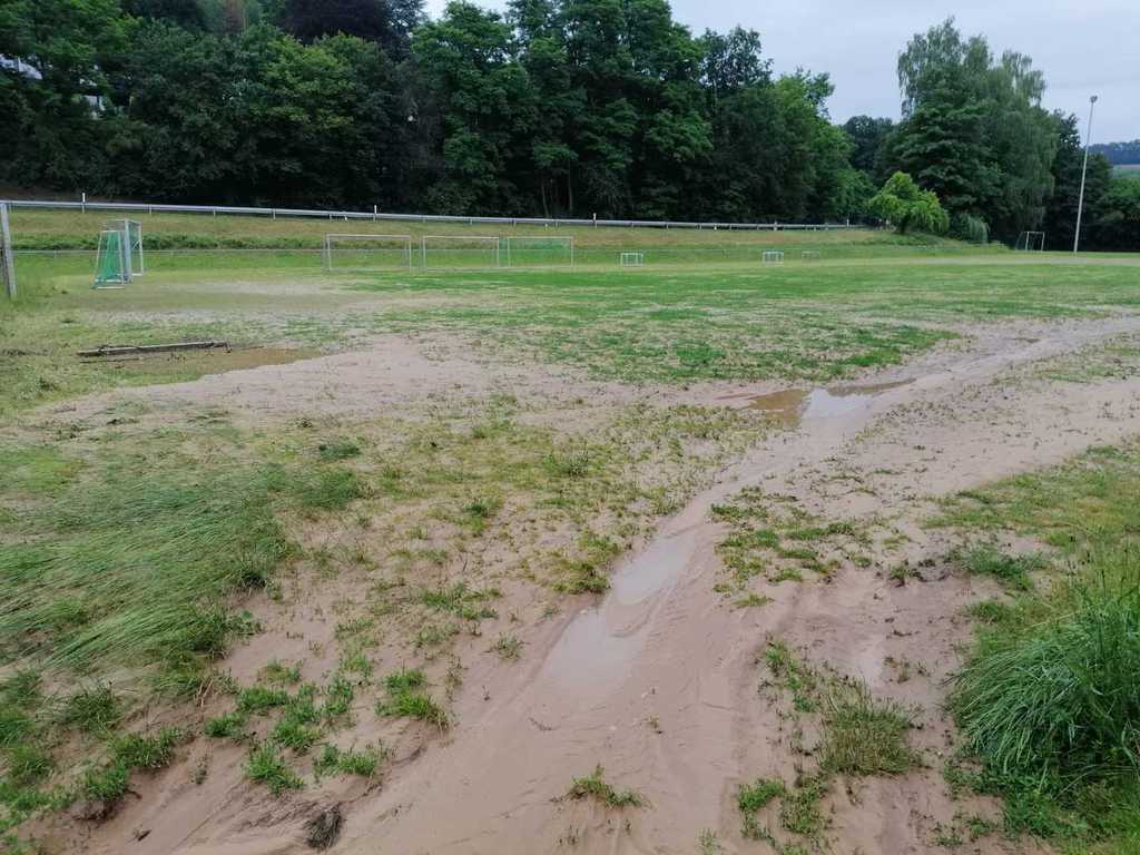 Heftige Gewitter und Starkregen sorgten in der Nacht auf Sonntag gebietsweise für schlaflose Nächte der vielen fleißigen Einsatzkräfte. Nach üblen Hochwassererfahrungen in den letzten Jahren waren auch in der vergangenen Nacht unsere Gedanken wieder bei unserem "Wohnzimmer", als Feuerwehrkommandant Christian Prakesch der Freiwilligen Feuerwehr Hösbach Bahnhof uns telefonisch über den Einsatz am Vereinsgelände informierte. Heftige Schlammlawinen überschwemmten Parkplatz, Garage, Fußwege und Teile des oberen Sportplatzes. Die zähen Schlammmassen "klebten" überall und mussten mit Bagger, viel Wasser und jeder Menge Einsatz der Helfer vom Boden gekratzt werden. Wir möchten uns ganz besonders bei der Freiwilligen Feuerwehr Hösbach Bahnhof und dem Bauhof der Marktgemeinde Hösbach für Ihren unermüdlichen Einsatz in der Nacht und während den Aufräumarbeiten am Sonntag bedanken. Ein weiteres sehr großes Dankeschön geht an die Firma Werotec, die spontan vorbei gekommen sind um uns mit Bautrocknern auszuhelfen. Den vielen weiteren fleißigen Helfern gilt ein genauso großes Dankeschön, das von ganzen Herzen kommt! Das war grandios von euch allen und überwältigend für uns zu sehen! Die Bahnhöfer haben mal wieder gezeigt, wie wir zusammen stehen, zusammen halten und auch das wieder gemeinsam schaffen. DANKE!